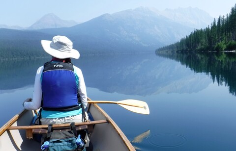 Ed and I prefer to canoe on rivers, but some of our most awesome experiences have been on lakes. In the summer of 2017, at Glacier National Park, we paddled one morning on a remote, five-mile-long lake near the Canadian border. The water of Kintla Lake was so clear and still underneath the boat that it seemed like we were canoeing on air. As if we were paddling into the sky.
